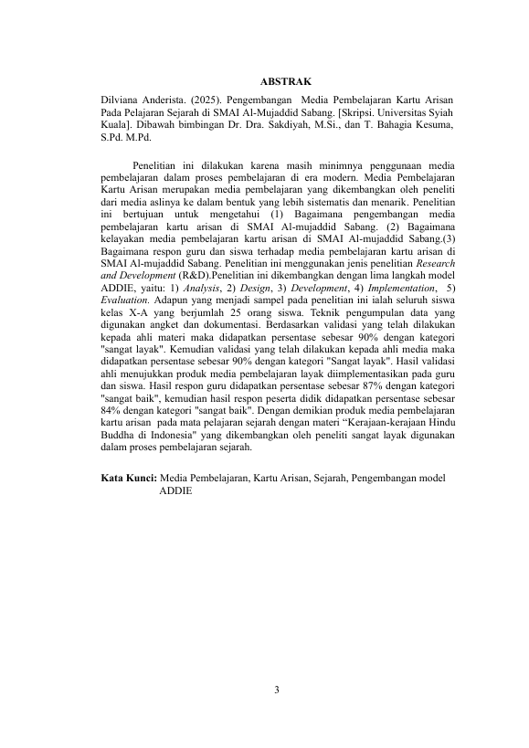 dilviana anderista, PENGEMBANGAN MEDIA PEMBELAJARAN KARTU ARISAN PADA MATA PELAJARAN SEJARAH RNDI SMAI AL-MUJADDID SABANG. Banda Aceh Fakultas KIP,2025