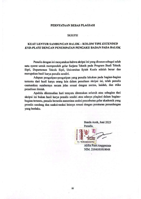 Baca Juga : KUAT LENTUR SAMBUNGAN BALOK KOLOM TIPE EXTENDED END-PLATE DENGAN PERBEDAAN PANJANG SOKONGAN PADA BALOK (Nuri Anjani, 2025)