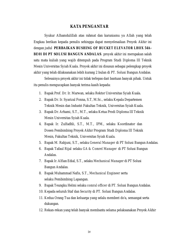 Rezekan, PERBAIKAN BUSHING BUCKET ELEVATOR LHO 54A-BE01 DI PT SOLUSI BANGUN ANDALAS. Banda Aceh Fakultas Teknik (D3),2025