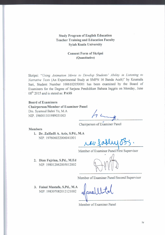 Baca Juga : THE USE OF ANIMATION MOVIE IN TEACHING WRITING NARRATIVE TEXT (A QUALITATIVE STUDY AT SMAN 8 BANDA ACEH) (Siti Nadya Raisa, 2015)