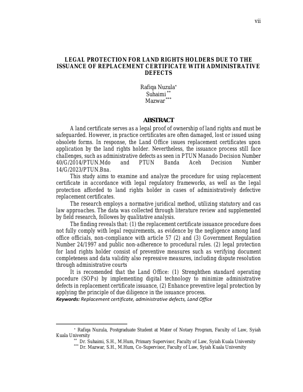Baca Juga : PENERBITAN SERTIPIKAT HAK ATAS TANAH GANDA YANG MENIMBULKAN KETIDAK PASTIAN HUKUM DALAM PEMILIKAN TANAH (SUATU PENELITIAN DI BADAN PERTANAHAN NASIONAL KOTA BANDA ACEH) (Munawar Auliasyaputra, 2025)