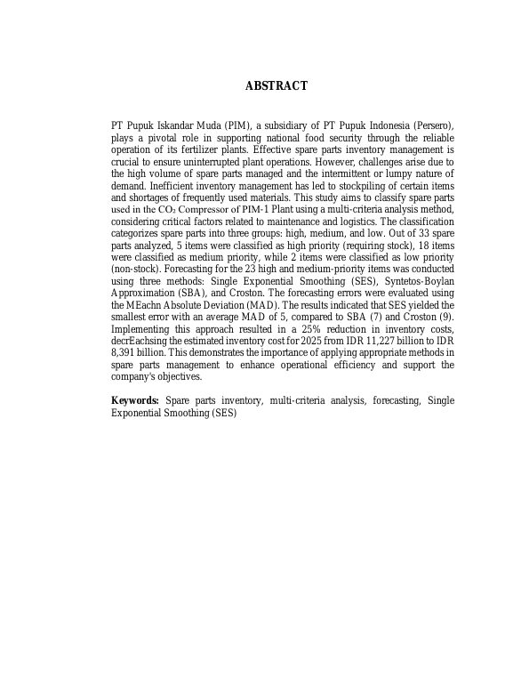 Baca Juga : ANALISIS PENGENDALIAN SUKU CADANG MESIN DENGAN MODEL PERSEDIAAN MULTIKRITERIA (STUDI KASUS PADA TURBIN GAS PT ARUN) (NUR FAJRIN RAMADHANI, 2015)