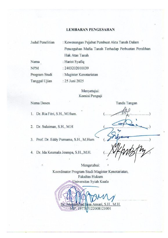 Baca Juga : TANGGUNG JAWAB PEJABAT PEMBUAT AKTA TANAH TERHADAP PEMBEBANAN HAK TANGGUNGAN DI DALAM KAWASAN HUTAN (Teuku Rulianda Zhafirin, 2024)
