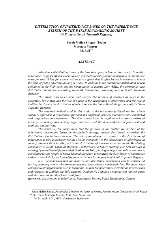 Baca Juga : KEDUDUKAN ANAK PEREMPUAN DALAM HUKUM WARIS ADAT PADA MASYARAKAT BATAK DI KABUPATEN ACEH TENGAH (Rouli Lastiurma Sinaga, 2017)
