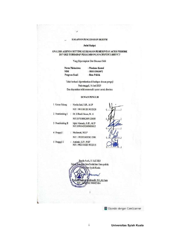 MAULANA KAMAL, ANALISIS AGENDA SETTING KEBIJAKAN PEMERINTAH ACEH PERIODE 2017 – 2022 TERHADAP PERKEMBANGAN CRYPTOCURRENCY. Banda Aceh Fakultas FKIP (S1),2025