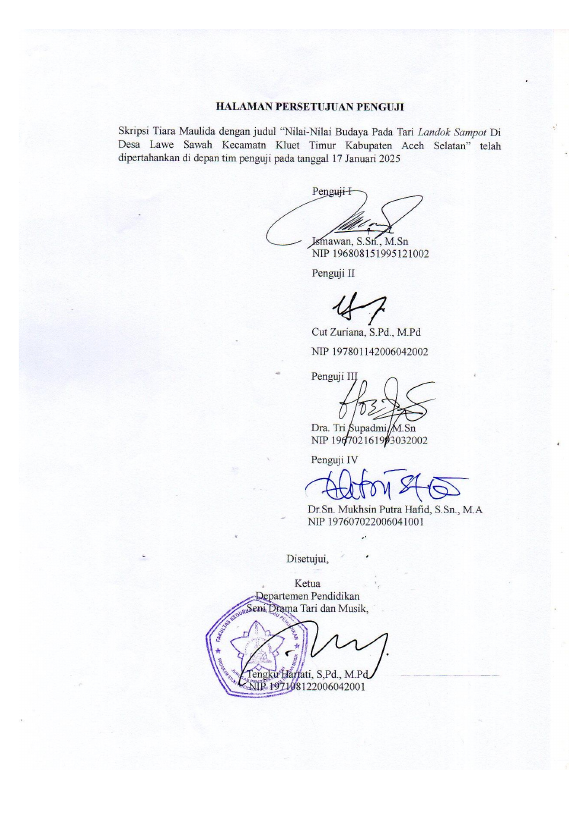 Baca Juga : NILAI-NILAI BUDAYA PADA TARI LANDOK SAMPOT DI DESA LAWE SAWAH KECAMATAN KLUET TIMUR KABUPATEN ACEH SELATAN (Tiara Maulida, 2025)