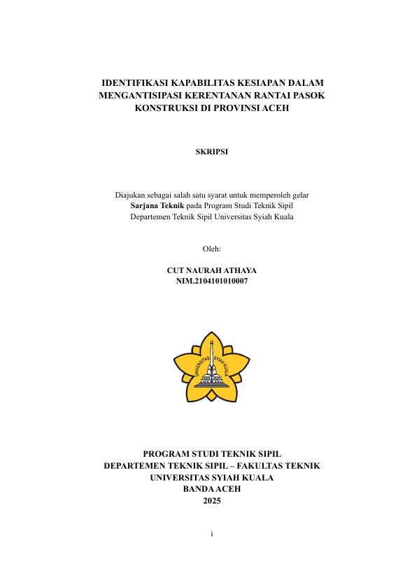 Baca Juga : IDENTIFIKASI KAPABILITAS PEMULIHAN DALAM MENGANTISIPASI KERENTANAN RANTAI RNPASOK KONSTRUKSI DI PROVINSI ACEH (ABDI DZIL IKRAM, 2025)
