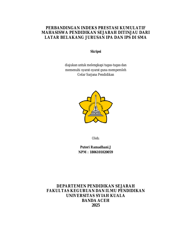 Baca Juga : PERBANDINGAN IPK MAHASISWA BERDASARKAN JALUR MASUK SNMPTN DENGAN SBMPTN PADA PROGRAM STUDI PENDIDIKAN SEJARAH UNIVERSITAS SYIAH KUALA (Yuni Sara, 2023)