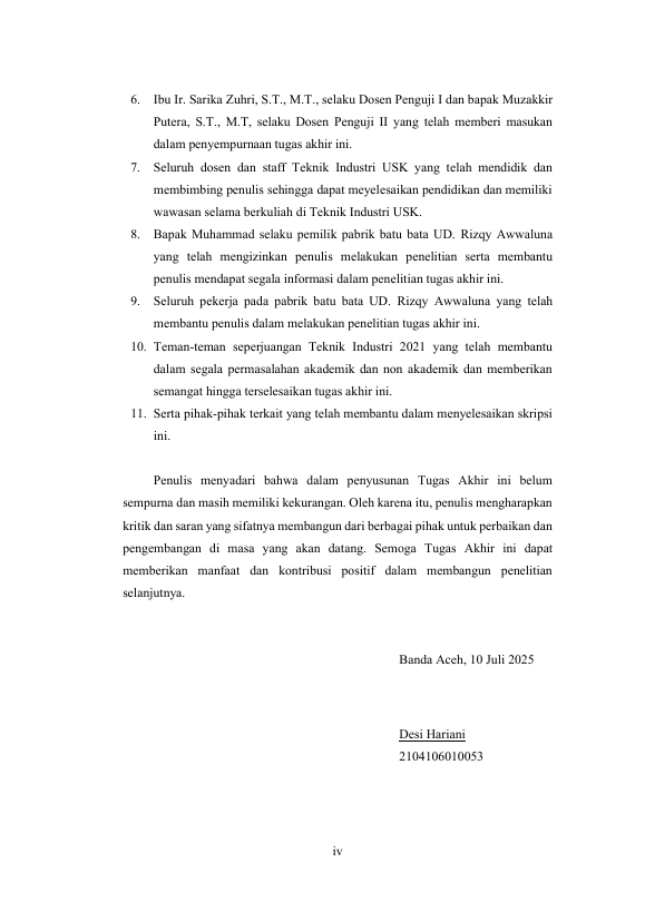 DESI HARIANI, ANALISIS PENGENDALIAN KUALITAS DAN REDUKSI WASTE DALAM PRODUKSI BATU BATA MERAH MENGGUNAKAN LEAN SIX SIGMA (STUDI KASUS: PABRIK BATU BATA UD. RIZQY AWWALUNA). Banda Aceh Fakultas Teknik,2025