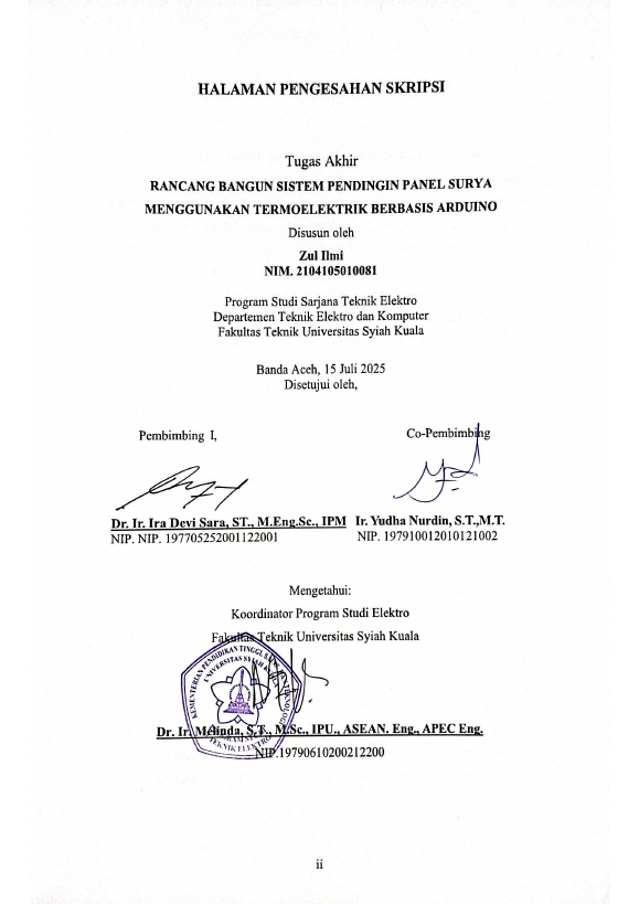 Baca Juga : ANALISA PENAMBAHAN HEATSINK DAN TERMOELEKTRIK TERHADAP KINERJA PANEL SURYA (Teuku Mizan Sya`rani Denk, 2019)
