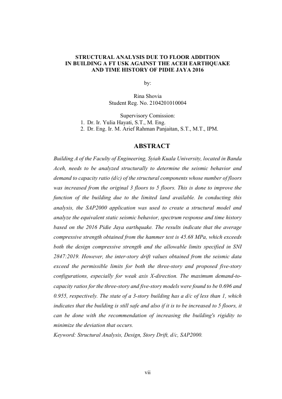 Baca Juga : ANALISIS STRUKTUR AKIBAT PENINGKATAN LANTAI PADA GEDUNG A FT USK TERHADAP GEMPA ACEH DAN TIME HISTORY PIDIE JAYA (Rina Shovia, 2025)