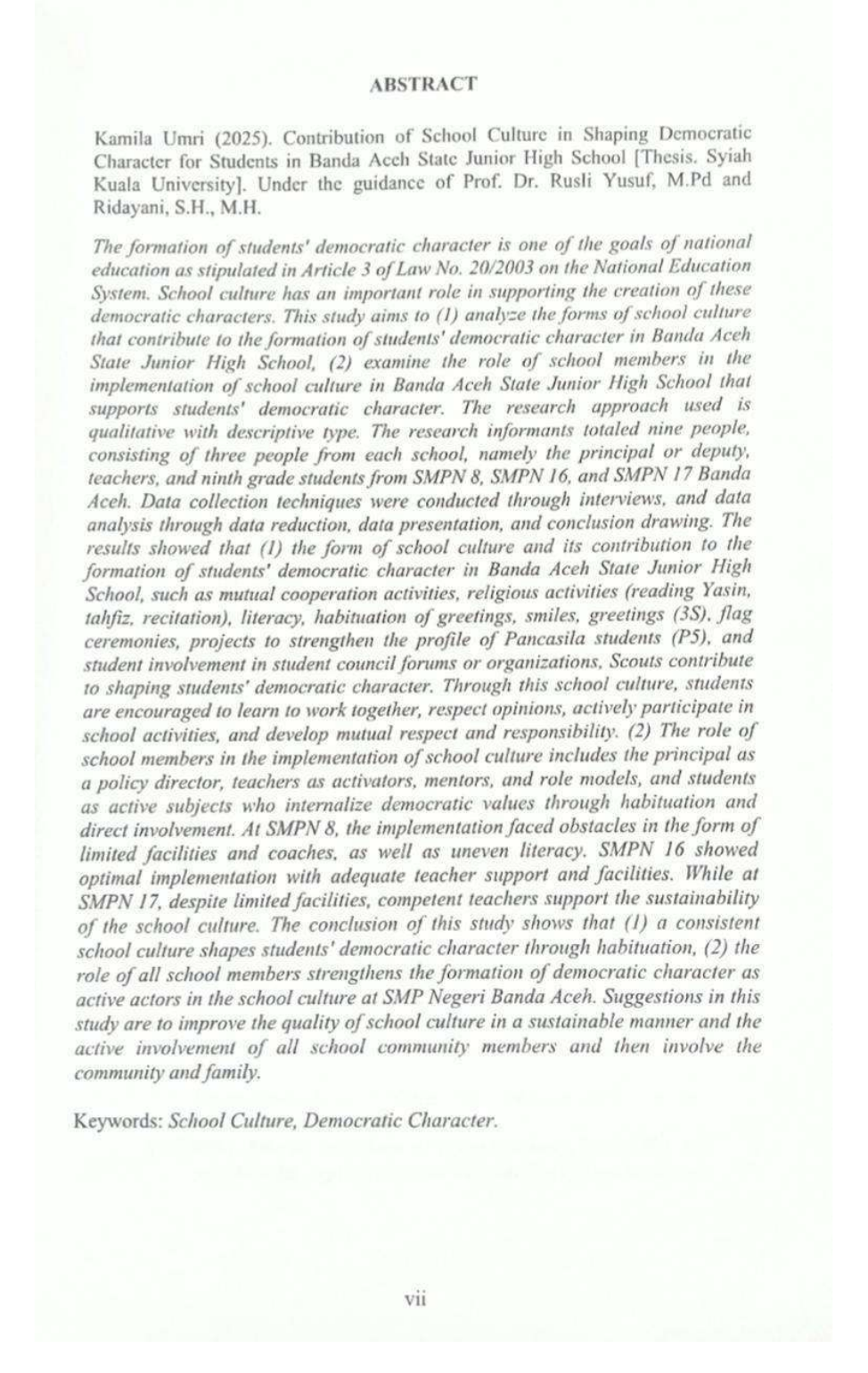 Baca Juga : ANALISIS PENERAPAN BUDAYA SEKOLAH DALAM PEMBENTUKAN KARAKTER SISWA DI SMK NEGERI ACEH UTARA (Fitrah Tamimi, 2025)