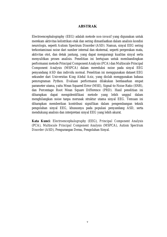 Baca Juga : PERBANDINGAN KINERJA MULTISCALE PRINCIPAL COMPONENT ANALYSIS (MS-PCA) DAN MULTISCALE INDEPENDENT COMPONENT ANALYSIS (MS-ICA) PADA SINYAL EEG PENYANDANG ASD (MUHAMMAD MIRZA RAHMAT, 2025)