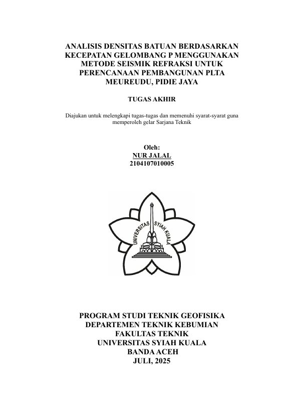 Baca Juga : IDENTIFIKASI BATUAN BAWAH PERMUKAAN GUNUNG GEURUTEE, ACEH JAYA SEBAGAI KELAYAKAN PEMBANGUNAN TEROWONGAN DENGAN METODE SEISMIK (Ulfa Hariyanti, 2019)