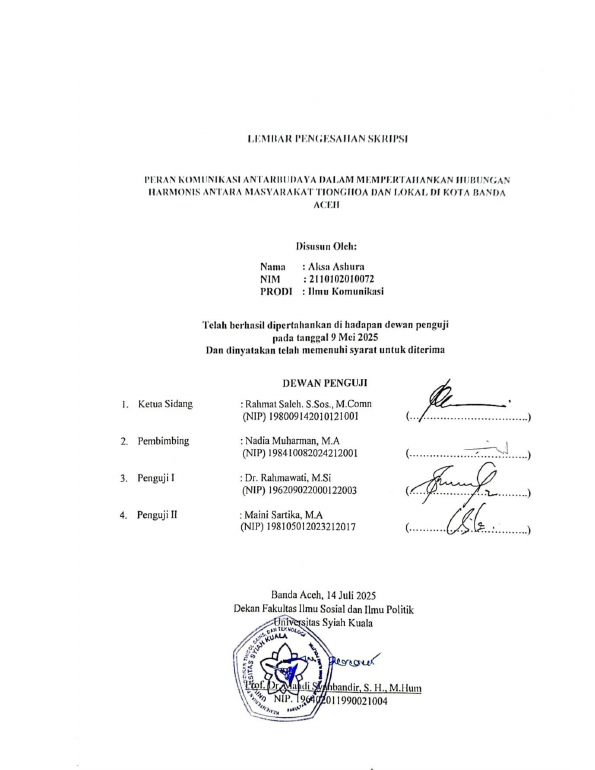 Aksa Ashura, PERAN KOMUNIKASI ANTARBUDAYA DALAM MEMPERTAHANKAN HUBUNGAN HARMONIS ANTARA MASYARAKAT TIONGHOA DAN LOKAL DI KOTA BANDA ACEH. Banda Aceh Fakultas llmu Sosial dan Politik (S1),2025
