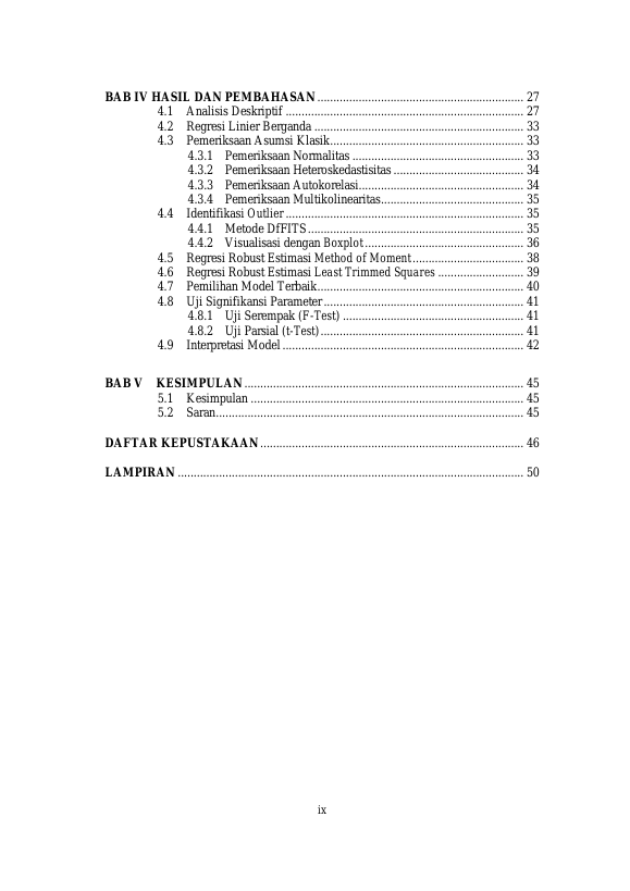 Baca Juga : PERBANDINGAN METODE ESTIMASI-M DAN ESTIMASI-S PADA REGRESI ROBUST (ALFI SYAHRIN, 2016)