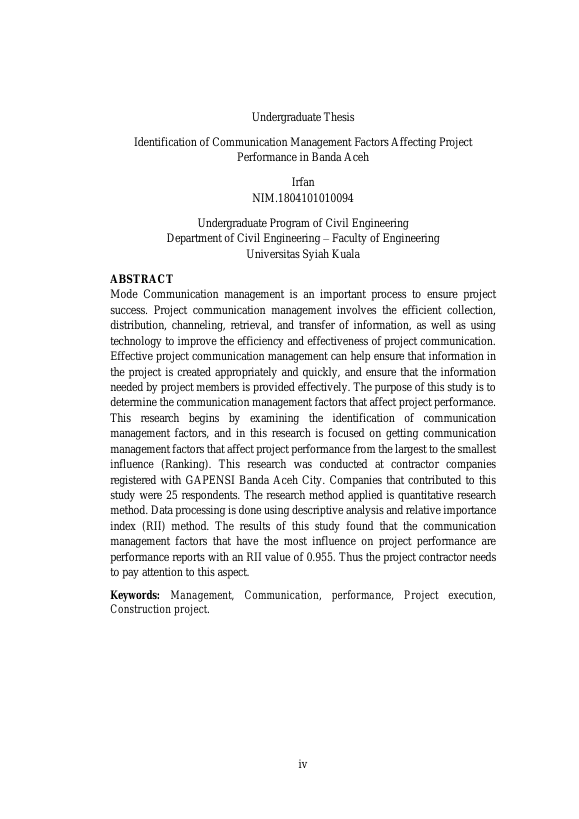 Baca Juga : PENGARUH KOMPETENSI MANAJER PROYEK TERHADAP PENCAPAIAN KINERJA PROYEK KONSTRUKSI DI BANDA ACEH (Muhammad Fauzan Surya, 2024)