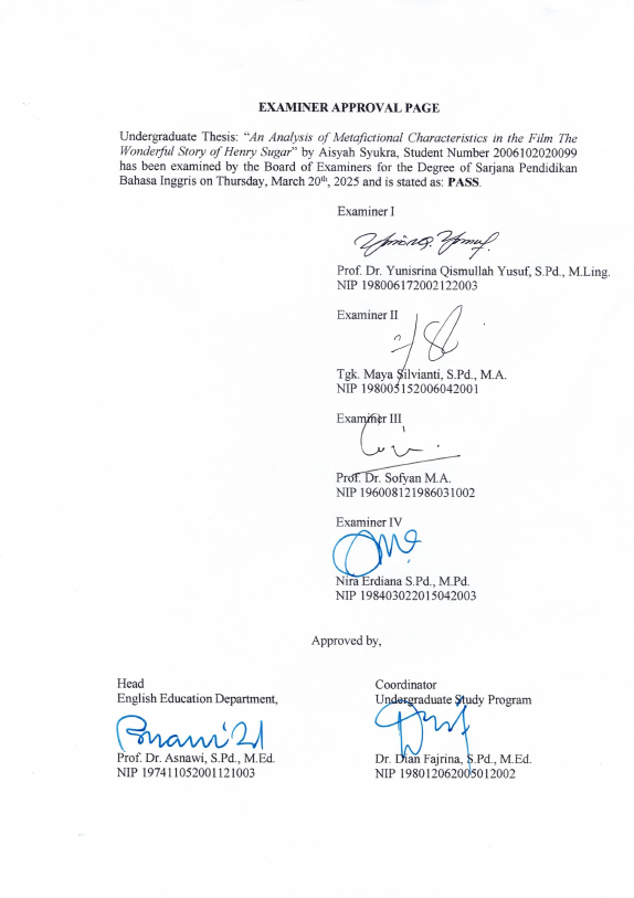 Baca Juga : AN ANALYSIS OF METAFICTIONAL CHARACTERISTICS IN THE FILM THE WONDERFUL STORY OF HENRY SUGAR (Aisyah Syukra, 2025)