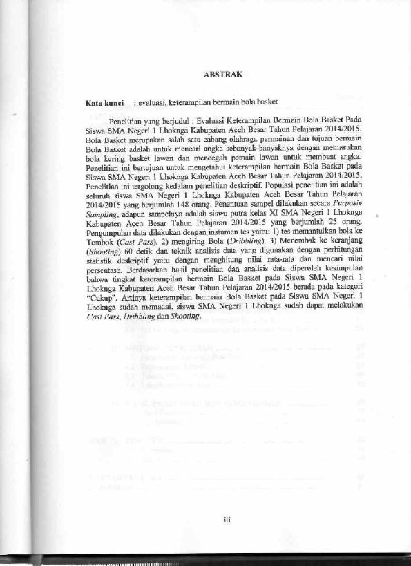 Baca Juga : TINGKAT KEMAMPUAN BERMAIN BOLA BASKET PADA SISWA SMA NEGERI 2 SAMALANGA KABUPATEN BIREUEN RNTAHUN PELAJARAN 2014/2015 (ZURYATI, 2015)