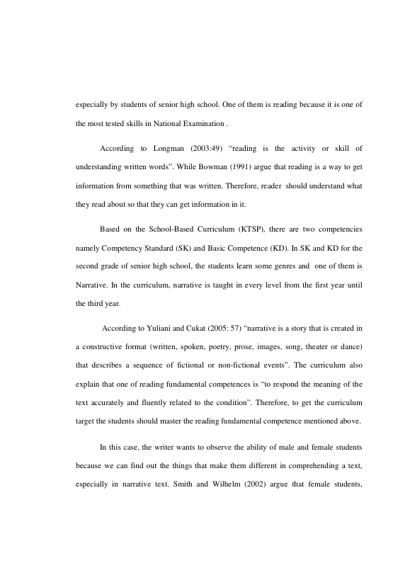 Baca Juga : A COMPARATIVE STUDY BETWEEN MALE AND FEMALE STUDENTS IN COMPREHENDING A NARRATIVE TEXT ON READING COMPREHENSION (lisa rahmi, 2013)