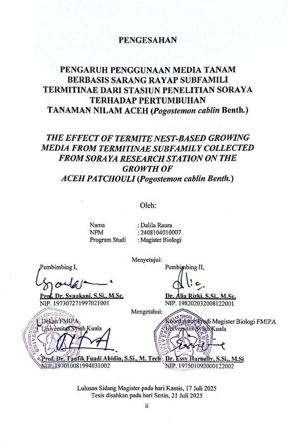 Baca Juga : PENGARUH PENGGUNAAN MEDIA TANAM SARANG RAYAP GENUS HOSPITALITERMES ASAL STASIUN PENELITIAN SORAYA TERHADAP PERTUMBUHAN TANAMAN NILAM (POGOSTEMON CABLIN BENTH.) (Qanita Layyina, 2025)