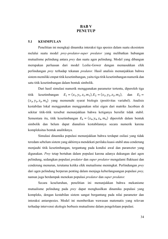Revi Marisa Putri, ANALISIS KESTABILAN DAN DINAMIKA POPULASI PADA MODEL PREY-PREDATOR-SUPER PREDATOR DENGAN MUTUALISME PERLINDUNGAN PADA PREY. Banda Aceh Fakultas MIPA (S2),2025