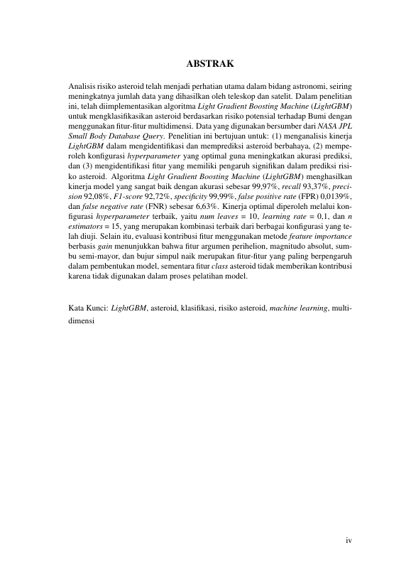 Baca Juga : STUDI KOMPARATIF ALGORITMA GENETIK DAN GRID SEARCH PADA OPTIMISASI HYPERPARAMETER DALAM PREDIKSI RISIKO ASTEROID (T. M. Chalid Al Kausar, 2026)
