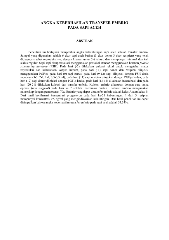 Baca Juga : ANGKA KEBERHASILAN TRANSFER EMBRIO PADA SAPI ACEH (vici imshar, 2015)