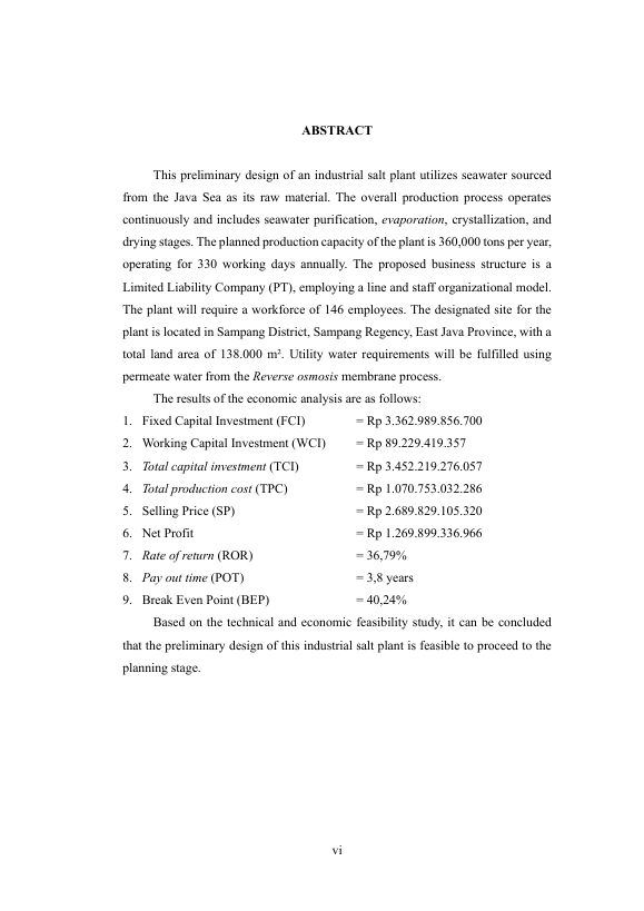 Baca Juga : PRARANCANGAN PABRIK GARAM INDUSTRI (NACI) PROSES VACUUM CRYSTALLISATION DENGAN KAPASITAS PRODUKSI 500.000 TON/TAHUN (Sri Wahyuni, 2025)