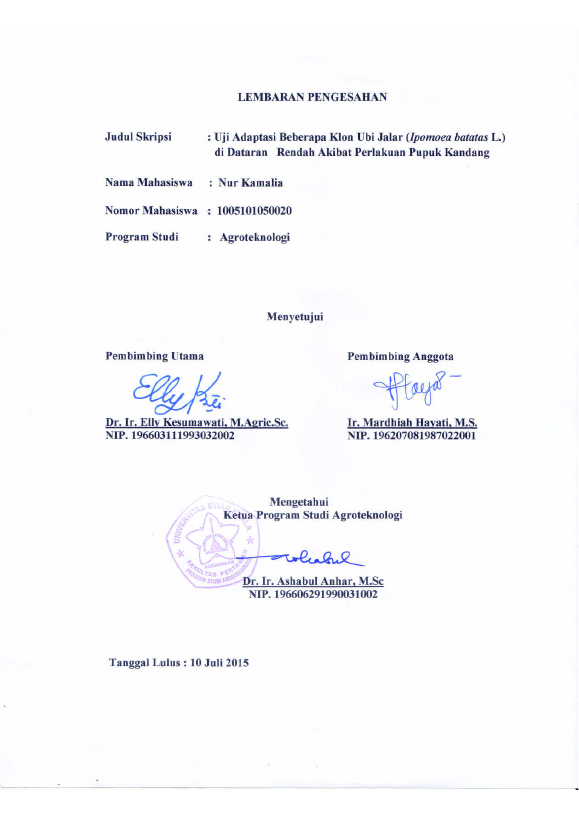 Baca Juga : UJI ADAPTASI BEBERAPA KLON UBI JALAR (IPOMOEA BATATAS L.) DI DATARAN RENDAH (Nur Aisyah, 2017)