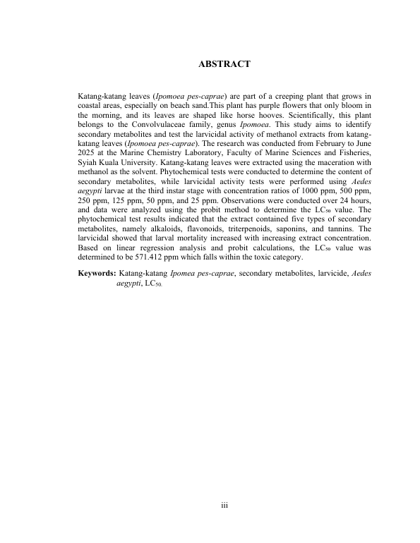 Baca Juga : UJI AKTIVITAS LARVASIDA AEDES AEGYPTI EKSTRAK METANOL DAUN PANDAN LAUT PANDANUS TECTORIUS (NOVA DILA KIRANI, 2024)