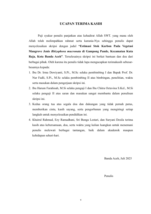 RAHMA ARIANI, ESTIMASI STOK KARBON PADA VEGETASI MANGROVE RHIZOPHORA MUCRONATA DI GAMPONG PANDE, KOTA BANDA ACEH. Banda Aceh Fakultas Kelautan,2025