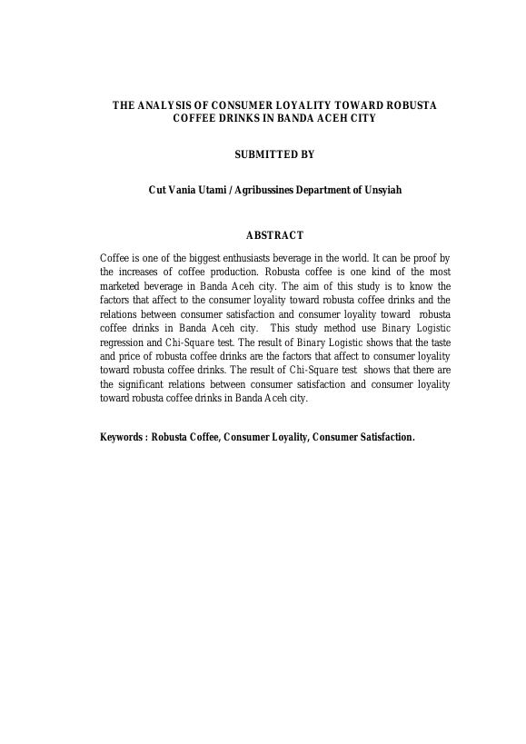 Baca Juga : LOYALITAS KONSUMEN TERHADAP MINUMAN KOPI ARABIKA DI KOTA BANDA ACEH (mukarramah, 2017)