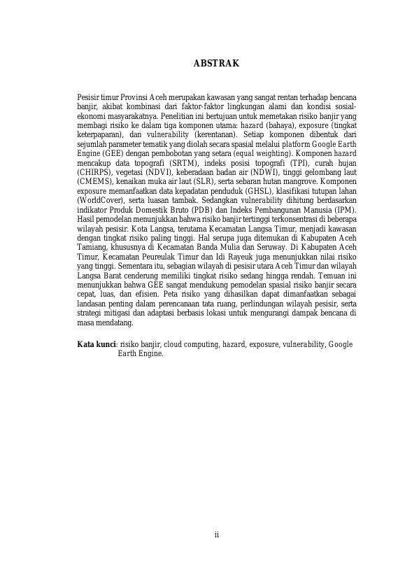 AY NAYA KAYRA, ANALISIS SPASIAL RISIKO DAN POTENSI BANJIR DI WILAYAH URBAN PADA PESISIR TIMUR PROVINSI ACEH DENGAN PENDEKATAN CLOUD COMPUTING. Banda Aceh Fakultas Kelautan dan perikanan,2025