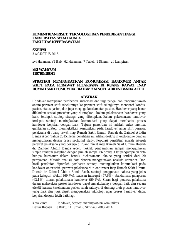 Sri Wahyuni, KEMENTRIAN RISET, TEKNOLOGI DAN PENDIDIKAN TINGGI UNIVERSITAS SYIAH KUALA FAKULTAS KEPERAWATAN. Banda Aceh Universitas Syiah Kuala,2015