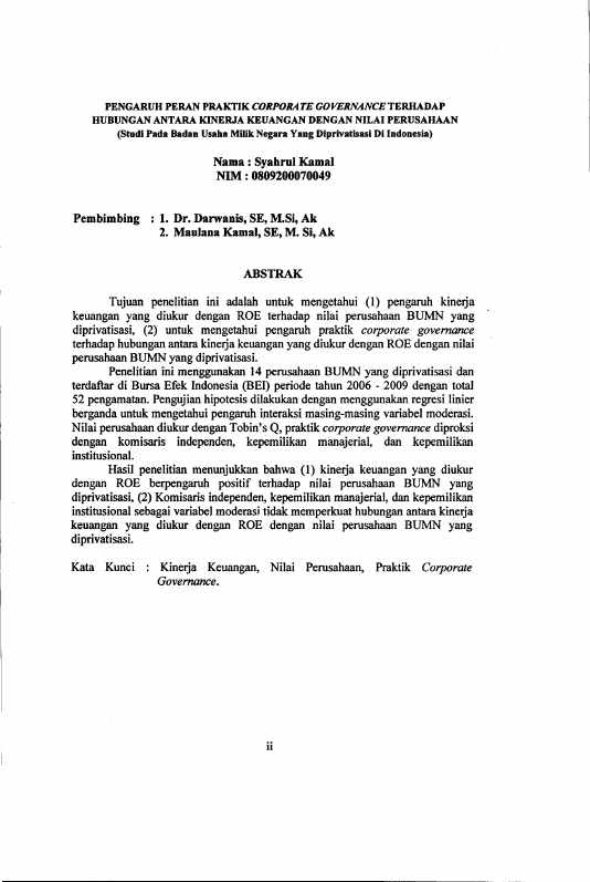 Baca Juga : PENGARUH GOOD CORPORATE GOVERNANCE DAN KINERJA KEUANGAN TERHADAP NILAI PERUSAHAAN PADA PERUSAHAAN PERAIH THE INDONESIA MOSTRNTRUSTED COMPANIES 2009-2012 (Daniel Kurniawan, 2014)