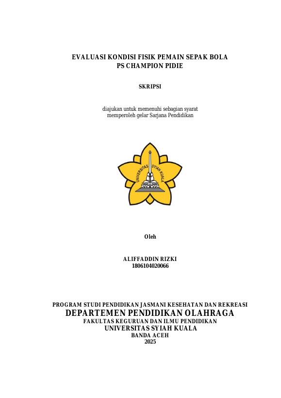ALIFADDIN RIZKI, EVALUASI KONDISI FISIK PEMAIN SEPAK BOLA PS CHAMPION PIDIE. Banda Aceh Fakultas FKIP UNSYIAH,2025