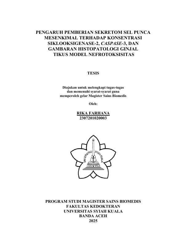Baca Juga : PENGARUH PEMBERIAN SEKRETOM SEL PUNCA MESENKIMAL TERHADAP KONSENTRASI CASPASE-3, SIKLOOKSIGENASE-2 DAN GAMBARAN HISTOPATOLOGI JANTUNG TIKUS MODEL KARDIOTOKSISITAS (Liza Aulia Putri, 2026)