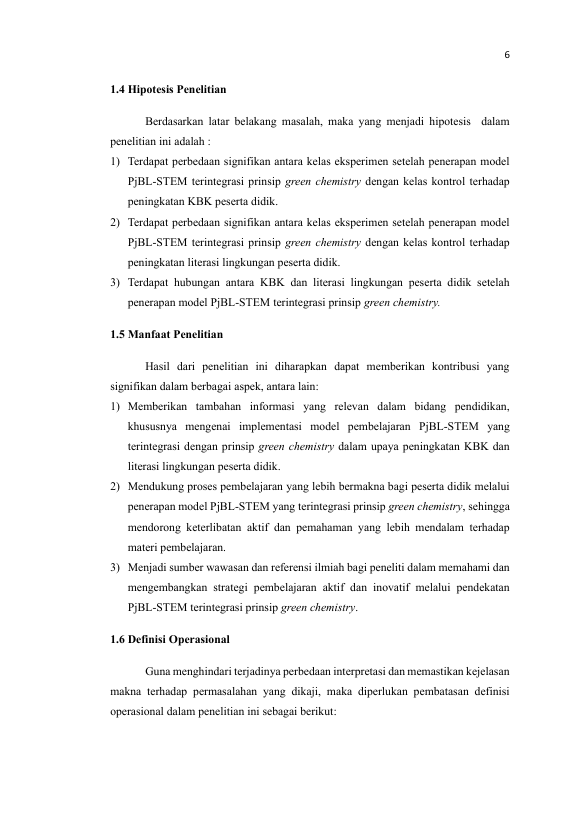 Haekal Wahyudi, PENGARUH PJBL-STEM TERINTEGRASI PRINSIP GREEN CHEMISTRY DALAM MENINGKATKAN KETERAMPILAN BERPIKIR KREATIF DAN LITERASI LINGKUNGAN. Banda Aceh Fakultas Pasca Sarjana,2025