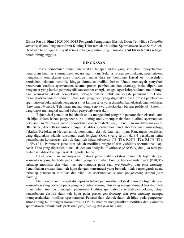Baca Juga : PENGARUH PENGGUNAAN EKSTRAK DAUN TEH HIJAU (CAMELLIA SINENSIS) DALAM PENGENCER SITRAT KUNING TELUR TERHADAP KUALITAS SPERMATOZOA BEKU SAPI ACEH (Ghina Farah Dina, 2025)