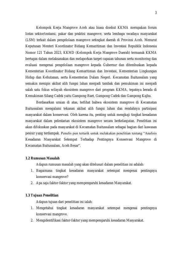 Baca Juga : PARTISIPASI MASYARAKAT DAN KONDISI EKOSISTEM MANGROVE DI KECAMATAN BAITUSSALAM KABUPATEN ACEH BESAR (Mulyana Sari, 2013)