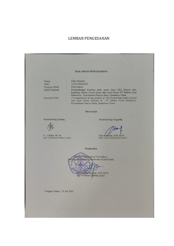 Baca Juga : PERBANDINGAN PERFORMA PRODUKSI, BERAT DAN KOMPONEN TELUR, SERTA KANDUNGAN BAKTERI TELUR AYAM PETELUR ISA BROWN YANG DIPRODUKSI DI KANDANG CLOSE HOUSE DAN OPEN HOUSE PT MABAR FEED INDONESIA, KABUPATEN DELI SERDANG, SUMATERA UTARA (Nyi Juwita, 2025)