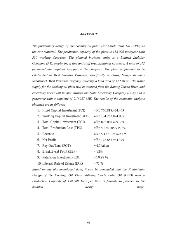 Rani Hastuti, PRARANCANGAN PABRIK MINYAK GORENG DARI CRUDE PALM OIL (CPO) DENGAN KAPASITAS PRODUKSI 158.000 TON/TAHUN. Banda Aceh Fakultas Teknik,2025