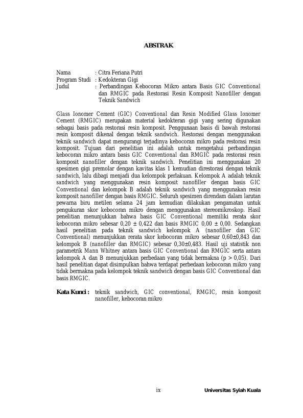 Baca Juga : PERBEDAAAN MICROLEAKAGE PADA TEKNIK SANDWICH RESIN KOMPOSIT – GLASS IONOMER CEMENT (DITINJAU DARI WAKTU APLIKASI) (Fikrizal, 2016)