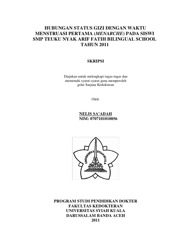 Baca Juga : HUBUNGAN STATUS GIZI DENGAN USIA MENARCHE PADA SISWI SEKOLAH MENENGAH PERTAMA NEGERI 2 KOTA BANDA ACEH TAHUN 2014 (Mirazi asyraf, 2014)