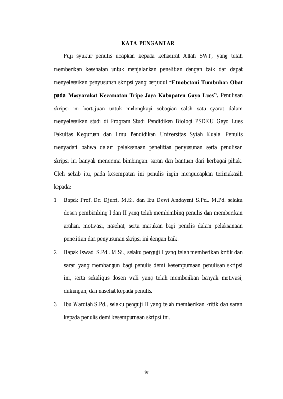 NOVI HANDAYANI, ETNOBOTANI TUMBUHAN OBAT PADA MASYARAKAT KECAMATAN TRIPE JAYA KABUPATEN GAYO LUES. Banda Aceh Fakultas KIP Biologi,2025