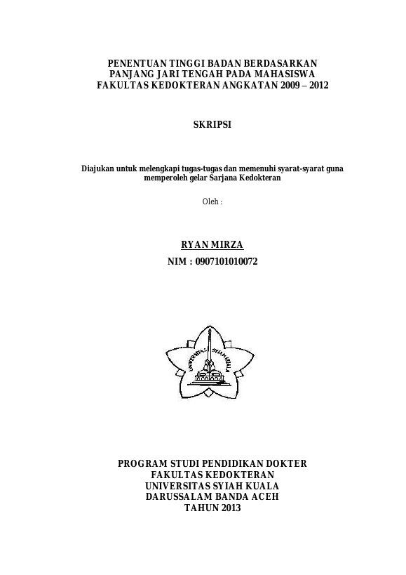 Baca Juga : PENENTUAN TINGGI BADAN BERDASARKAN PANJANG JARI TENGAH PADA MAHASISWA FAKULTAS KEDOKTERAN ANGKATAN 2009 - 2012 (Ryan Mirza, 2023)