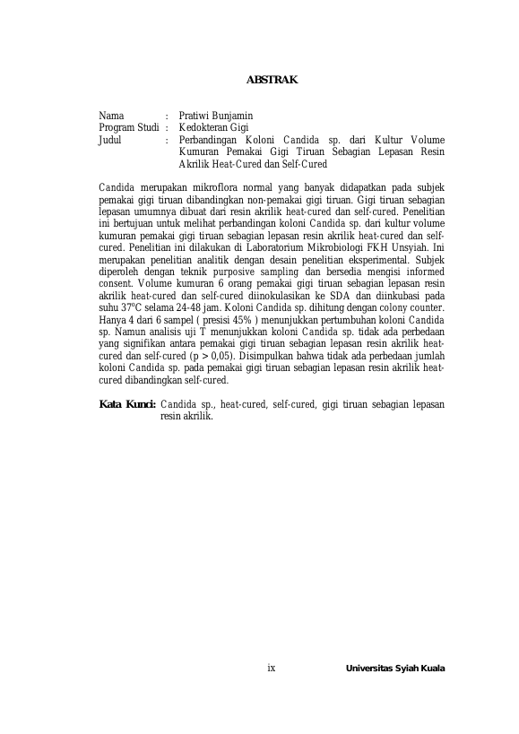 PRATIWI BUNJAMIN, PERBANDINGAN KOLONI CANDIDA SP. DARI KULTUR VOLUME KUMURAN PEMAKAI GIGI TIRUAN SEBAGIAN LEPASAN RESIN AKRILIK HEAT-CURED DAN SELF-CURED. Banda Aceh Fakultas Kedokteran Gigi,2012