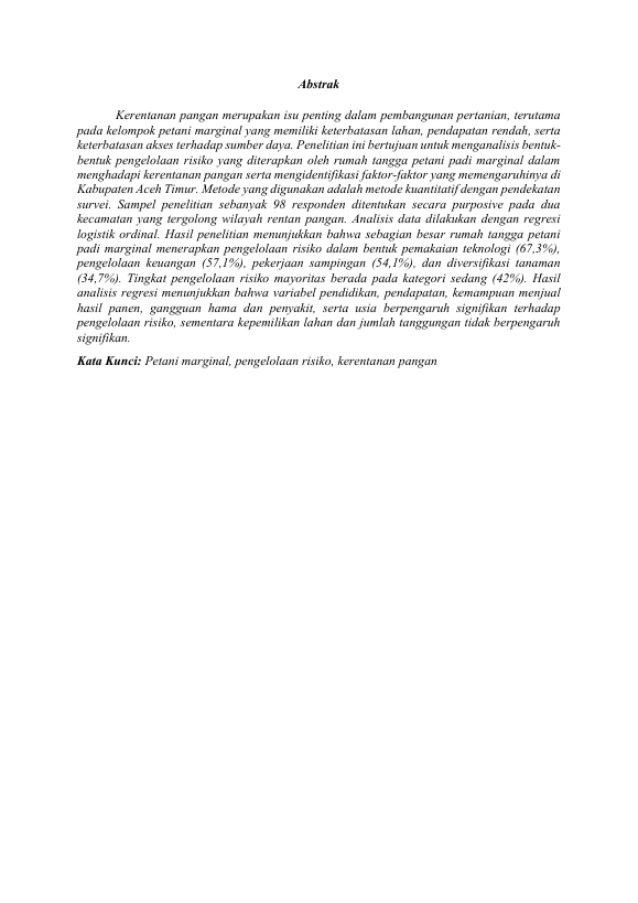 Baca Juga : ANALISIS SIKAP TOLERANSI PETANI TERHADAP RISIKO BERUSAHATANI (STUDI KASUS PADA PETANI PANGAN DAN PETANI SAYURAN DI KECAMATAN LHOKNGA KABUPATEN ACEH BESAR) (MUHAMMAD WAHDAN, 2018)