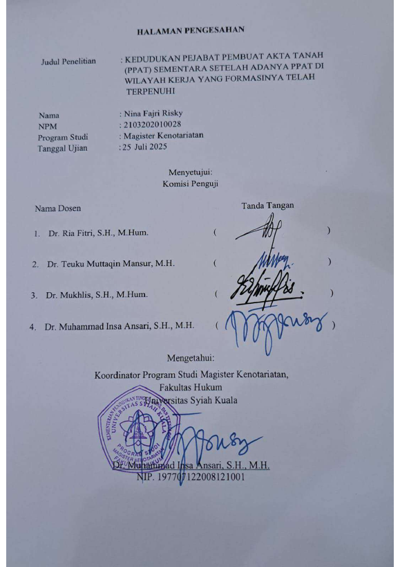 Baca Juga : KEBERADAAN CAMAT SEBAGAI PEJABAT PEMBUAT AKTA TANAH SEMENTARA DI KOTA BANDA ACEH (Fahmi Riza, 2025)